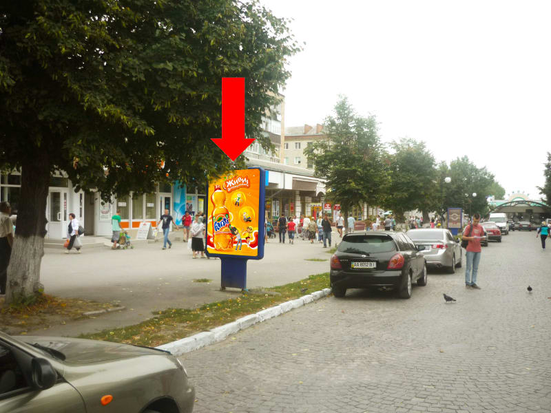 Сітілайт 1.8×1.2 м для розміщення зовнішньої реклами в м. Кам'янець-Подільський. Поруч орієнтир: магазину Комфорт. Сторона B, розмір 1.8×1.2 м. Рекламне розміщення з високою видимістю та охопленням. Код: KPd1063.