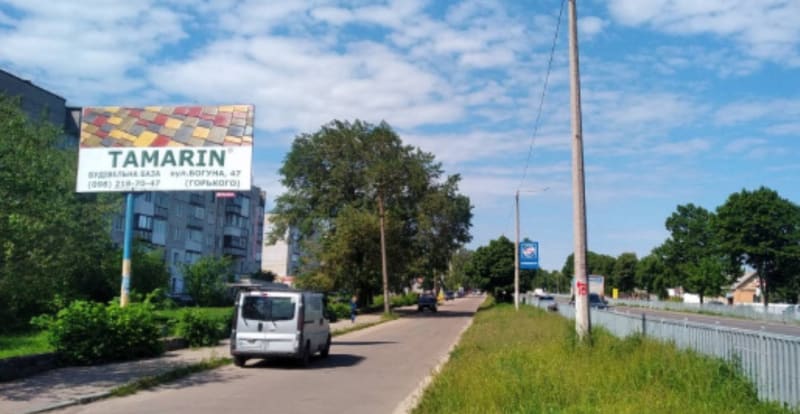 Білборд Коростишів Коростишів в. Київська 103 (ГУСЬ), центральна вулиця, напрямок з Києва на Житомир, напроти с/м "ФУРШЕТ",ст.Б Ksh10 — Замовити | РА Тринога