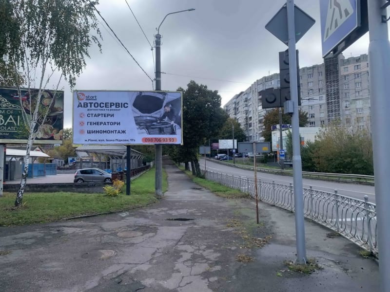Рекламна площина в м. м.Рівне — рекламна конструкція. Сторона A. Високий трафік — ефективне розміщення для будь-якого бізнесу. Код: РВБ 006.