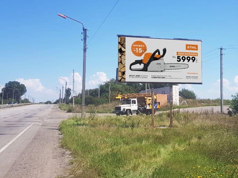 Рекламний щит 3×6 м для розміщення зовнішньої реклами в м. Траса. Напрямок руху — у бік Харкова. Формат 3×6 м (сторона A). Підходить для іміджевої та навігаційної реклами. Код: Trs28954.