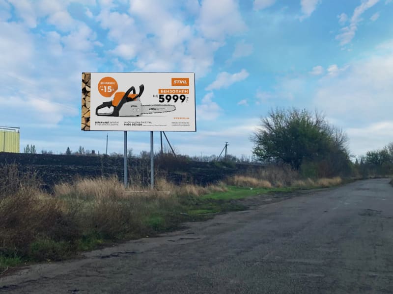 Зовнішня реклама в м. Траса: рекламний щит 3×6 м. Розмір площини: 3×6 м, сторона B. Стратегічна локація для ефективної зовнішньої реклами. Код: Trs28852.