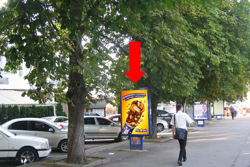 Пропонуємо в оренду сітілайт 1.8×1.2 м в м. Хмельницький. Поруч орієнтир: парку ім. Шевченка. Сторона A, розмір 1.8×1.2 м. Ідеальне місце для розміщення реклами вашого бренду. Код: Khm1076.