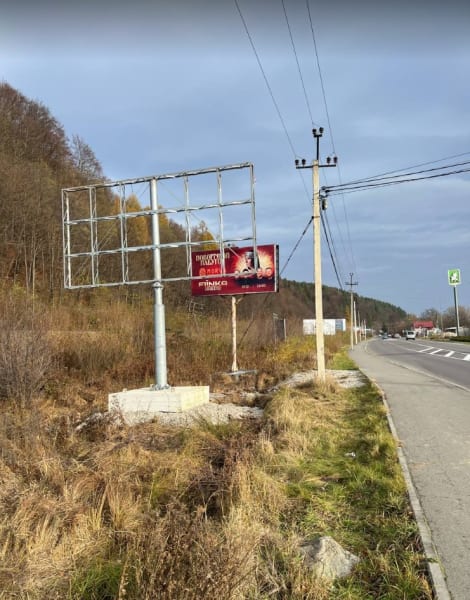 Пропонуємо в оренду рекламна конструкція 3×6 м в м. Яремче (Буковель). Конструкція на виїзді з міста, напрямок — від Буковелю до Делятина біля заправки ОККО. Розмір площини: 3×6 м, сторона B. Ідеальне місце для розміщення реклами вашого бренду. Код: НЯ-С11-2.