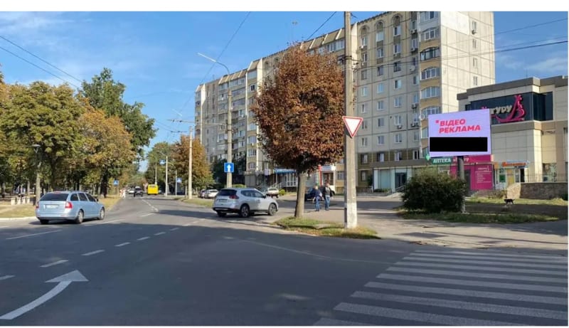Оренда рекламна конструкціяу 2.3×3.14 м в м. Біла Церква. Розмір площини: 2.3×3.14 м, сторона A. Стратегічна локація для ефективної зовнішньої реклами. Код: BC_LED_006.
