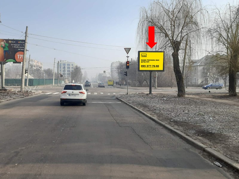 Онопрієнка вул., Навпроти будинку №2 (Пожежна академія, маркет "АТБ", АЗС "Лукойл", магазини Поб.техніка), в напрямку з центру • щит