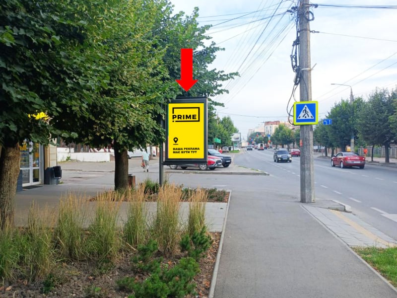 Зовнішня реклама в Чернівцях: сітілайт 1.8×1.2 м. Поруч орієнтир: Приватбанку. Сторона B, розмір 1.8×1.2 м. Підходить для іміджевої та навігаційної реклами. Код: Chc1068.