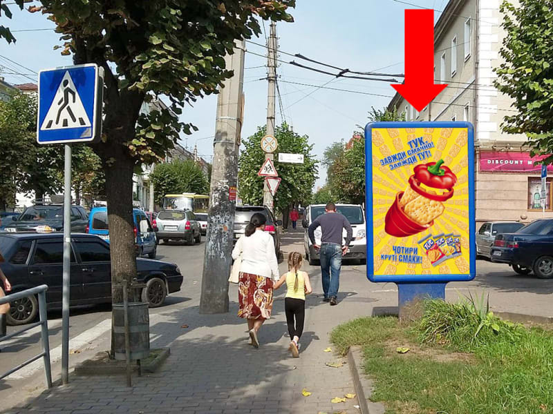Рекламна площина 1.8×1.2 м в Чернівцях — сітілайт. Розташовано біля Центрального ринку. Розмір площини: 1.8×1.2 м, сторона A. Чудова видимість — оптимальний варіант для просування бренду. Код: Chc1077.