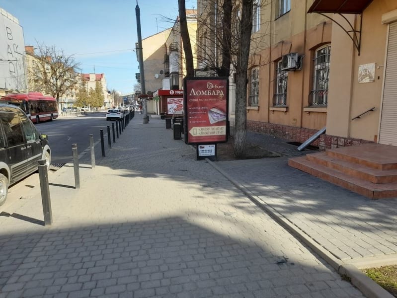 Зовнішня реклама в Івано-Франківську: сітілайт 1.8×1.2 м. Сторона A, розмір 1.8×1.2 м. Зручне розташування для максимального охоплення аудиторії. Код: IvF22627.