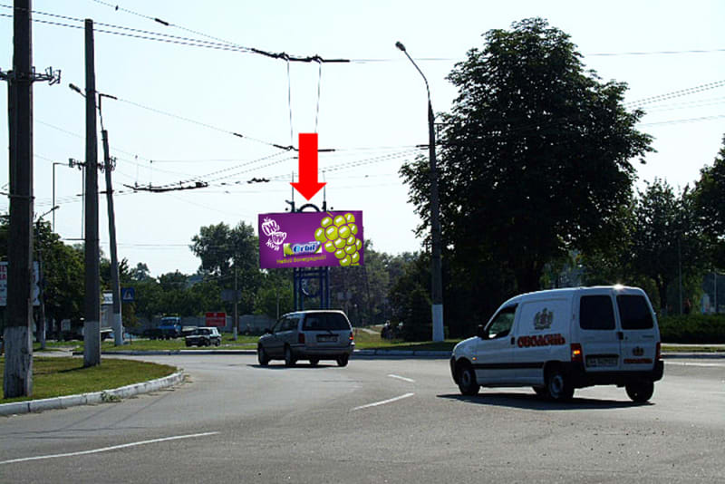 Рекламний щит 3×6 м для розміщення зовнішньої реклами в Кременчуці. Формат 3×6 м (сторона A). Чудова видимість — оптимальний варіант для просування бренду. Код: Krg1043.