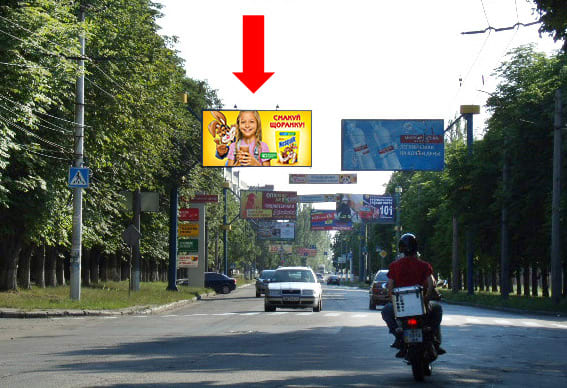 Рекламний щит 3×6 м для розміщення зовнішньої реклами в Кременчуці. Сторона B, розмір 3×6 м. Чудова видимість — оптимальний варіант для просування бренду. Код: Krg1032.