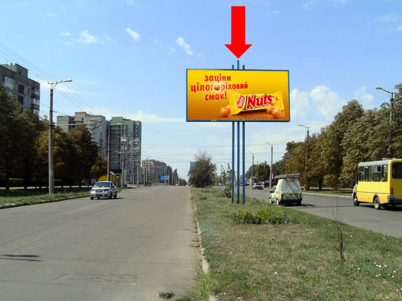 Рекламна площина 3×6 м в Кропивницькому — рекламний щит. Поруч орієнтир: супермаркетів Фокстрот. Формат 3×6 м (сторона A). Підходить для іміджевої та навігаційної реклами. Код: Kir1054.