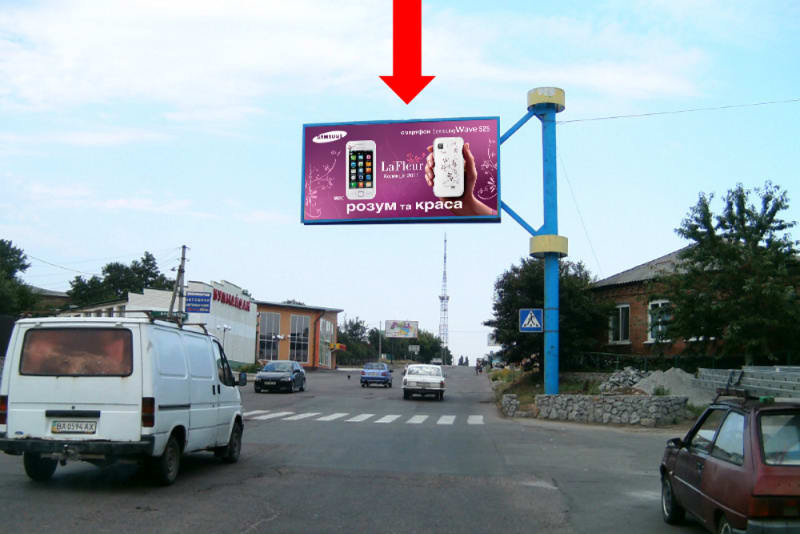 Короленка вул. (На роздільнику), (100м. До АЗС "ОККО") виїзд з міста в напрямку Черкас • щит