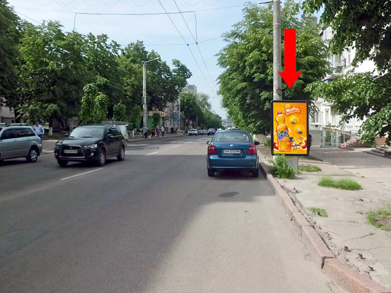 Сітілайт 1.8×1.2 м для розміщення зовнішньої реклами в Кропивницькому. Поруч орієнтир: магазину Music Brand. Формат 1.8×1.2 м (сторона A). Підходить для іміджевої та навігаційної реклами. Код: Kir1085.