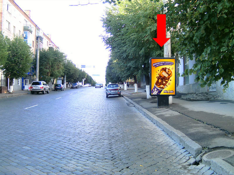 Рекламна площина 1.8×1.2 м в Кропивницькому — сітілайт. Поруч орієнтир: Райффайзен Банк Аваль. Сторона A, розмір 1.8×1.2 м. Чудова видимість — оптимальний варіант для просування бренду. Код: Kir1125.