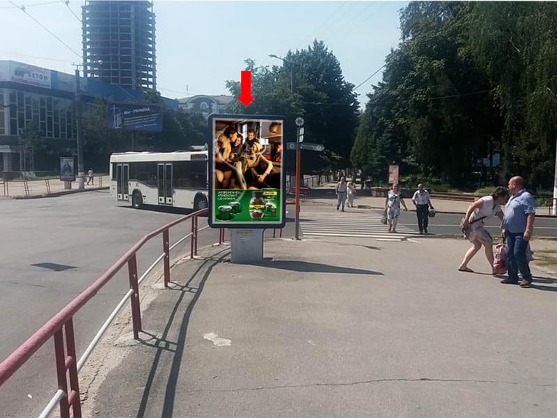 Зовнішня реклама в Кропивницькому: сітілайт 1.8×1.2 м. Сторона A, розмір 1.8×1.2 м. Стратегічна локація для ефективної зовнішньої реклами. Код: Kir1153.