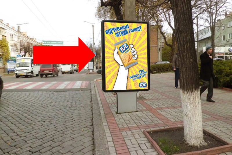 Зовнішня реклама в Кропивницькому: сітілайт 1.8×1.2 м. Розташовано біля готелю Європа. Сторона A, розмір 1.8×1.2 м. Зручне розташування для максимального охоплення аудиторії. Код: Kir1073.