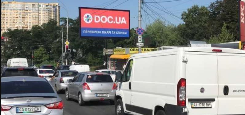 Заболотного вул., 156/1, на розподілювачі (АЗС "ОККО", АЗС "WOG"), в напрямку Столичне шосе • призма