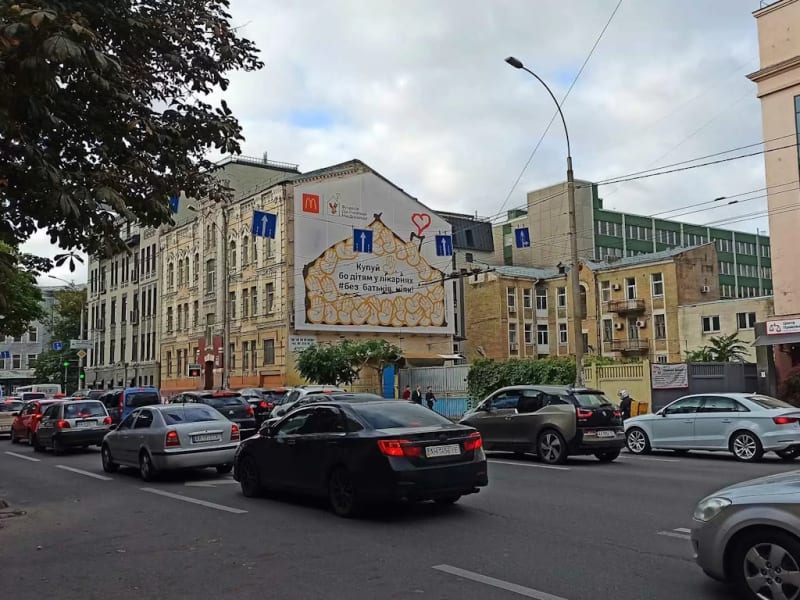Брандмауер 11×13 м для розміщення зовнішньої реклами в Києві. Формат 11×13 м (сторона A). Забезпечує широке охоплення цільової аудиторії в Києві. Код: Ki60918.