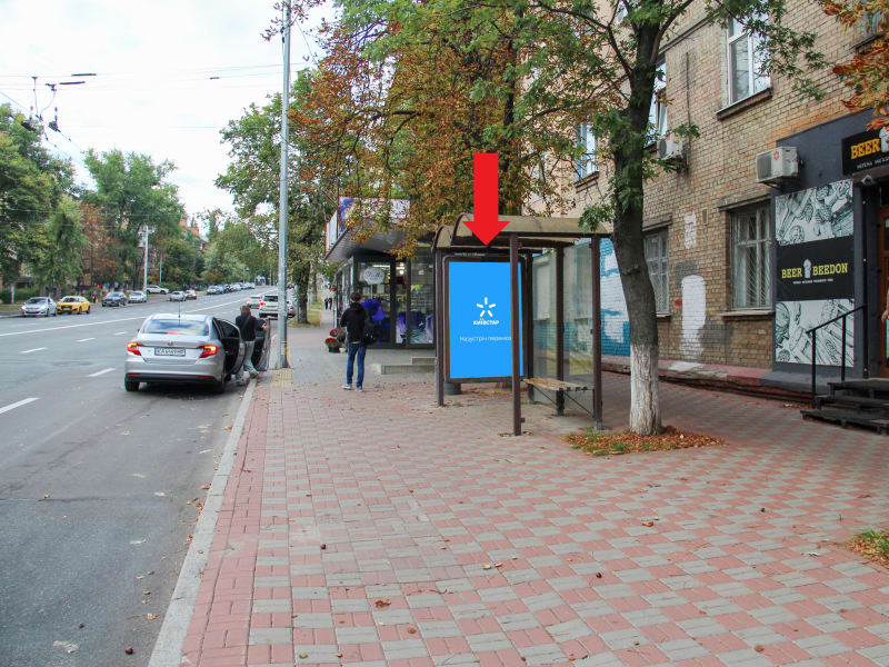 Зовнішня реклама в Києві: сітілайт 1.8×1.2 м. Розмір площини: 1.8×1.2 м, сторона A. Зручне розташування для максимального охоплення аудиторії. Код: Ki42189.