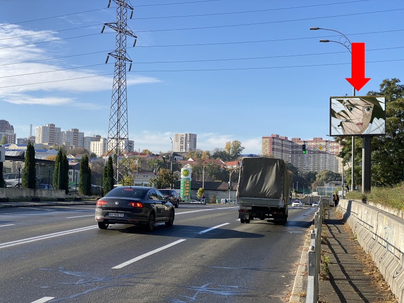 Рекламний щит для розміщення зовнішньої реклами в Києві. Площина орієнтована в сторону вул. Лобановського пр. (колиш. Червонозоряний пр.). Сторона A. Високий трафік — ефективне розміщення для будь-якого бізнесу. Код: Ki0058.