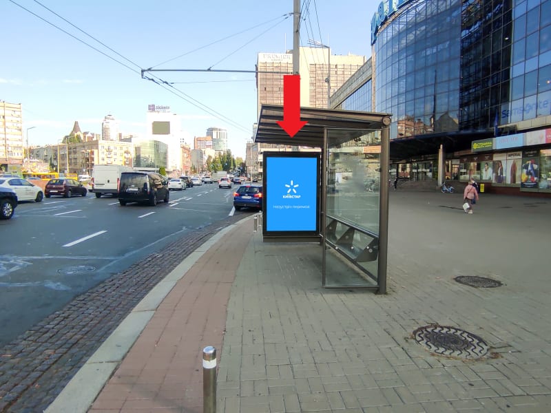 Сітілайт для розміщення зовнішньої реклами в Києві. Поруч орієнтир: ТЦ Україна. Сторона A. Забезпечує широке охоплення цільової аудиторії в Києві. Код: Ki42682.