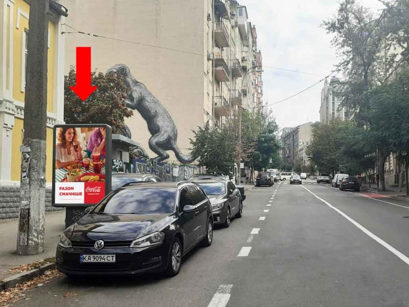 Рекламна площина в Києві — сітілайт. Напрямок руху — вул. Яр. Вал. Сторона B. Ідеальне місце для розміщення реклами вашого бренду. Код: Ki8220.