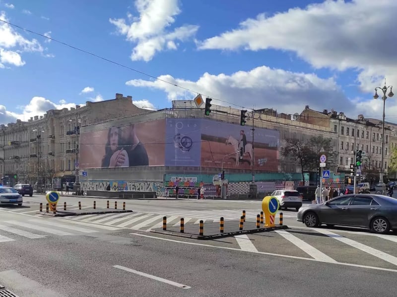 Рекламна площина 7.6×54.95 м в Києві — брандмауер. Формат 7.6×54.95 м (сторона A). Високий трафік — ефективне розміщення для будь-якого бізнесу. Код: Ki60906.
