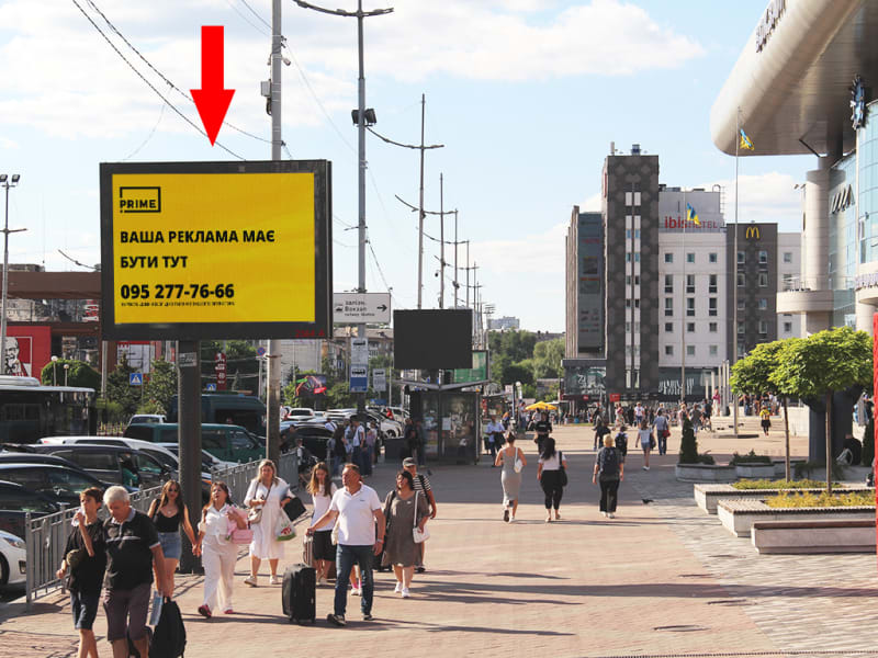 Цифрова панель для розміщення зовнішньої реклами в Києві. Поруч орієнтир: входу. Сторона A. Рекламне розміщення з високою видимістю та охопленням. Код: Ki0001.