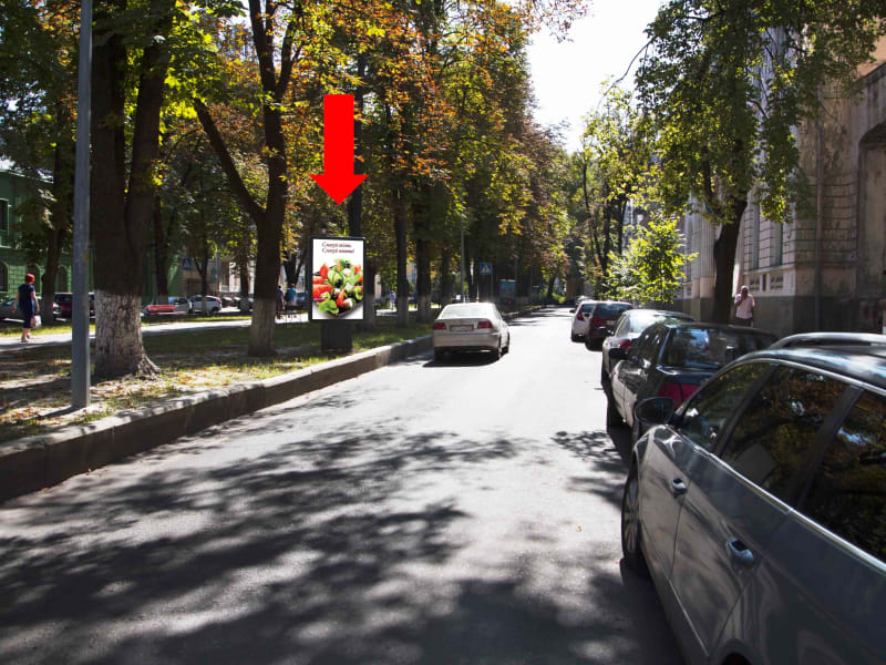 Оренда сітілайту 1.8×1.2 м в м. Київ. Площина орієнтована в сторону вул. Орлика. Сторона A, розмір 1.8×1.2 м. Чудова видимість — оптимальний варіант для просування бренду. Код: 7233a.