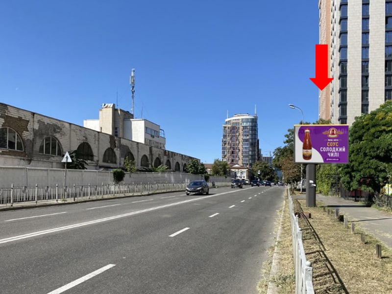 Оренда рекламного щита в м. Київ. Напрямок руху — центру. Сторона A. Підходить для іміджевої та навігаційної реклами. Код: Ki0519.