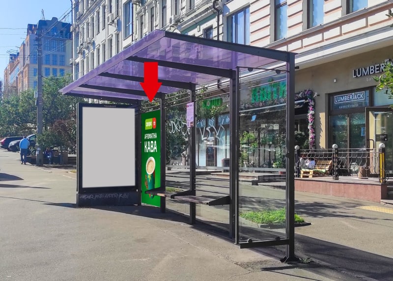 Зовнішня реклама в Києві: сітілайт 1.36×2.04 м. Розмір площини: 1.36×2.04 м, сторона A. Ідеальне місце для розміщення реклами вашого бренду. Код: Ki42678-C.