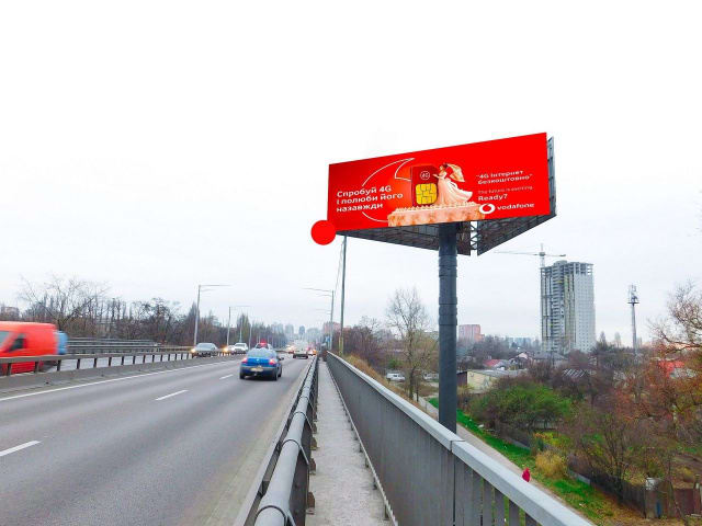 Виговського Івана вул. (Маршала Гречко), на розподілювачі (Ашан, Ресторан Прага, Еко-марткет), в напрямку Правди просп. • призма