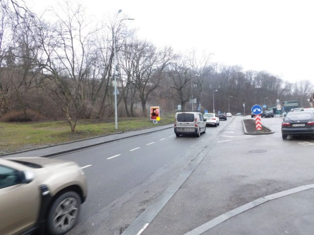 Сверстюка Є.вул.(Раскової М. вул.) навпроти буд. № 15 (Приват Банк, "Український професійний Банк", Нова Пошта, Рошен), в напрямку метро Лівобережна • призма
