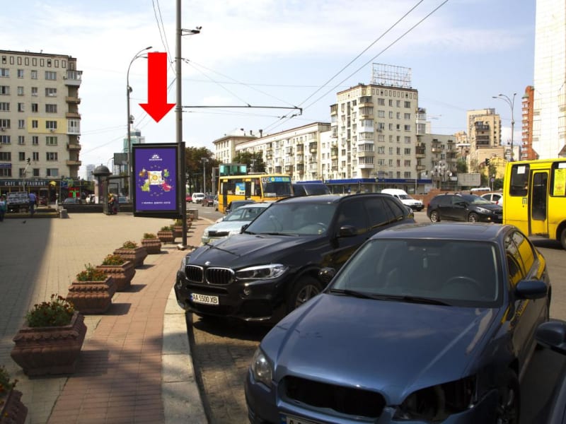 Сітілайт для розміщення зовнішньої реклами в Києві. Розташовано біля універмагу Україна. Сторона B. Чудова видимість — оптимальний варіант для просування бренду. Код: 7133b.