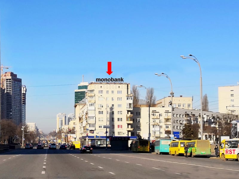 Рекламна площина в Києві — дахова установка. Сторона A. Зручне розташування для максимального охоплення аудиторії. Код: Ki8027.