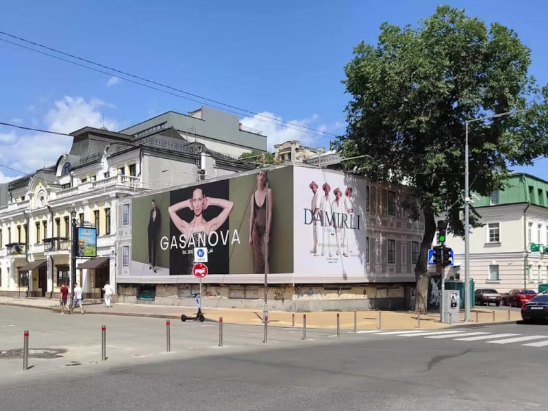 Рекламна площина 5.95×45.9 м в Києві — брандмауер. Розмір площини: 5.95×45.9 м, сторона A. Зручне розташування для максимального охоплення аудиторії. Код: Ki60920.