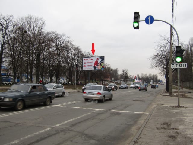 Зовнішня реклама в Києві: рекламний щит 3×6 м. Напрямок руху — Кільцевої дороги. Сторона В, розмір 3×6 м. Рекламне розміщення з високою видимістю та охопленням. Код: 118b.