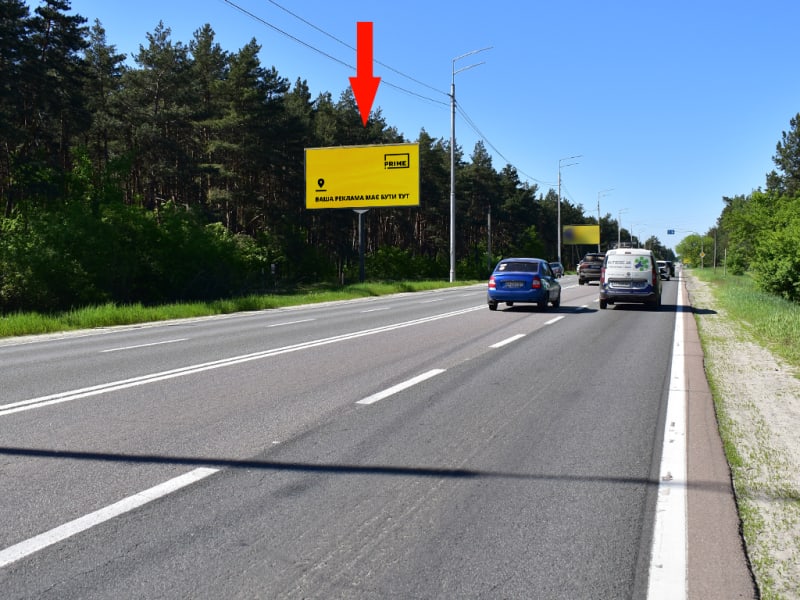 Рекламний щит для розміщення зовнішньої реклами в Києві. Напрямок руху — Києва. Сторона B. Ідеальне місце для розміщення реклами вашого бренду. Код: Ki8669.