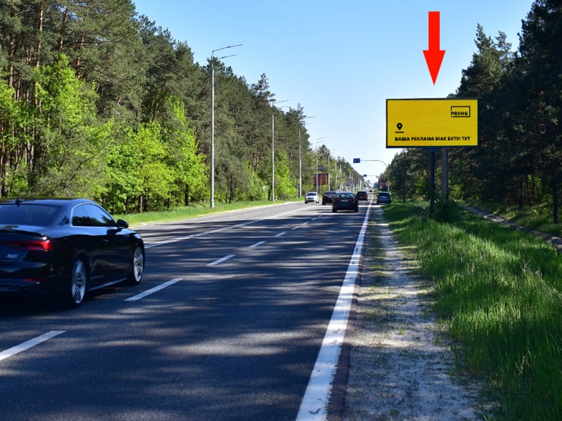 Рекламний щит для розміщення зовнішньої реклами в Києві. Напрямок руху — з Києва. Сторона A. Забезпечує широке охоплення цільової аудиторії в Києві. Код: Ki8672.