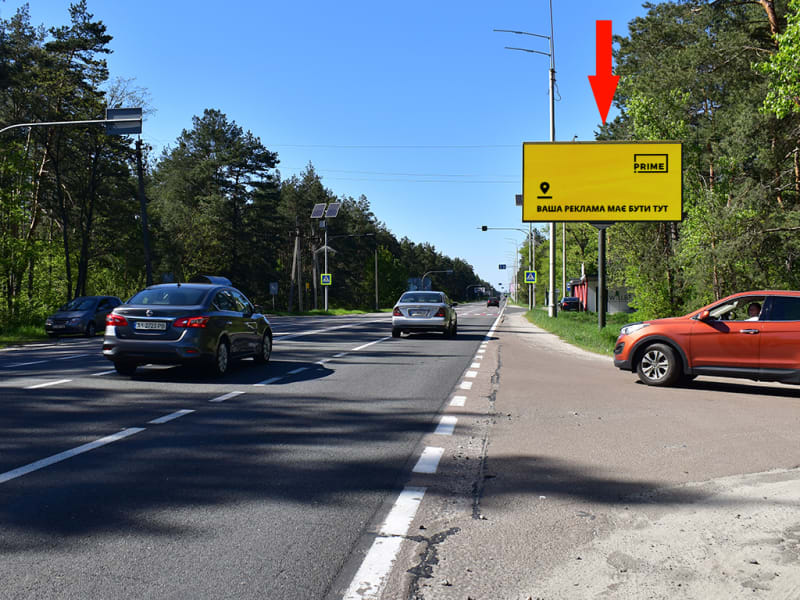 Зовнішня реклама в Києві: рекламний щит. Напрямок руху — Києва. Сторона A. Забезпечує широке охоплення цільової аудиторії в Києві. Код: Ki8670.