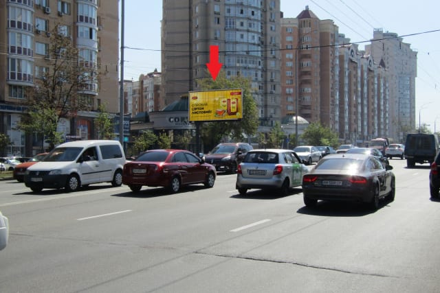 Біл борди Київ Володимира Івасюка (Героїв Сталінграду) просп., 6 (АТБ-маркет, Novus, АЗС "ОККО"), в напрямку просп. Степана Бандери 182b — Замовити | РА Тринога