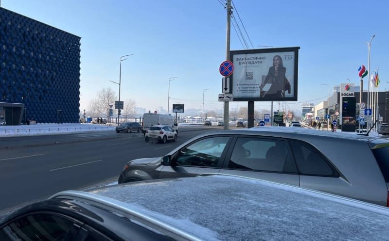 Соборності пр-т (Возз'єднання) в центр, перед пішохідним мостом на Русанівку • скрол