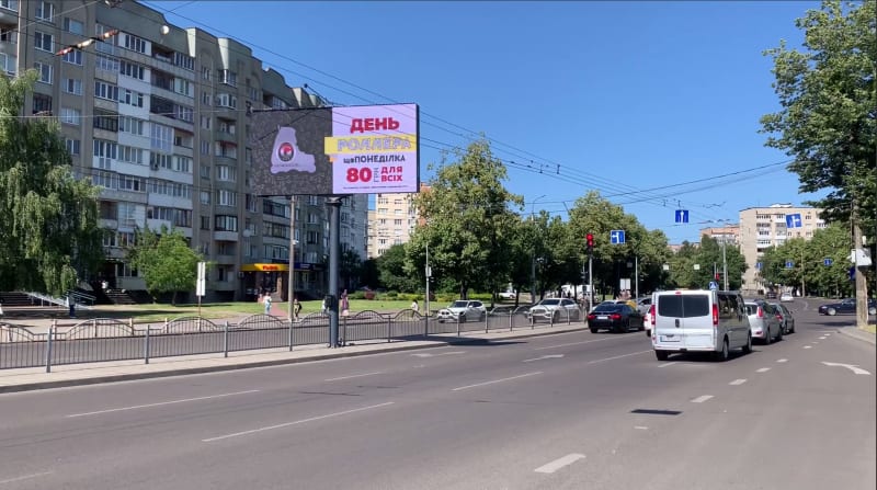 Led-екран Луцьк на перехресті влуиці Сбороності і вулиці В'ячеслава Чорновола відеоборд в напрямку від центру 11Б — Замовити | РА Тринога