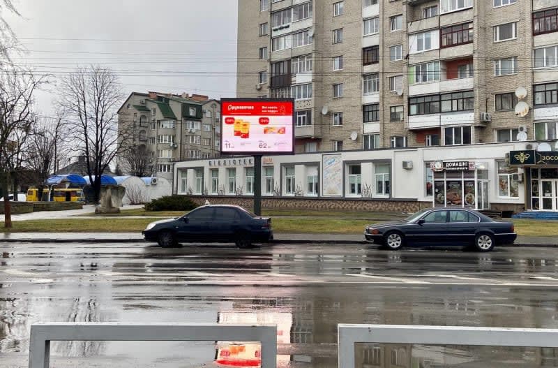Рекламна конструкція 2.3×3.14 м для розміщення зовнішньої реклами в Луцьку. Розмір площини: 2.3×3.14 м, сторона A. Підходить для іміджевої та навігаційної реклами. Код: 1-1.