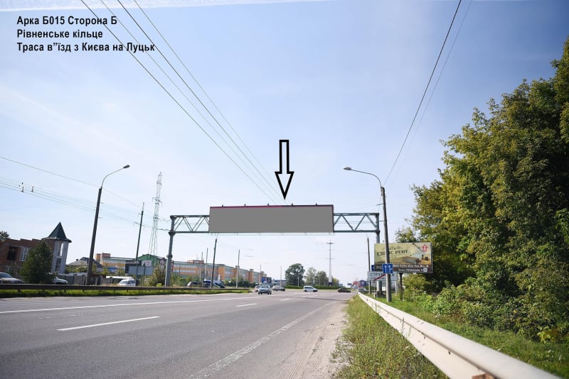 Рекламна площина 3×15 м в Луцьку — рекламна конструкція. Конструкція розташована на в'їзді в місто. Розмір площини: 3×15 м, сторона A. Ідеальне місце для розміщення реклами вашого бренду. Код: Б015.