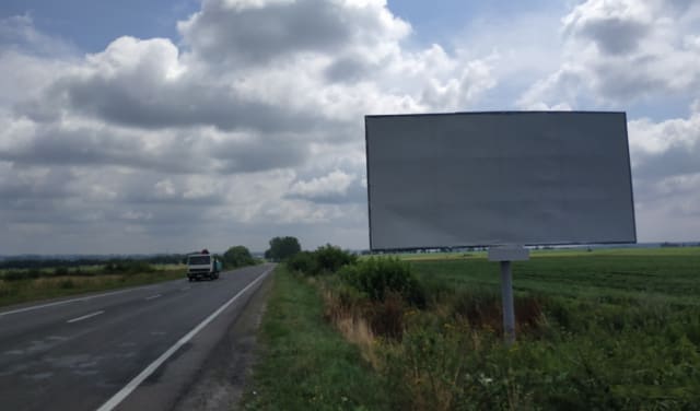 Рекламний щит 6×3 м для розміщення зовнішньої реклами в Львові. Конструкція розташована на в'їзді в місто. Формат 6×3 м (сторона A). Стратегічна локація для ефективної зовнішньої реклами. Код: Akv087.