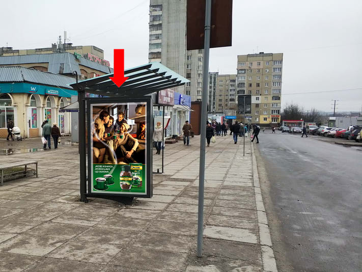 Зовнішня реклама в Львові: сітілайт 1.8×1.2 м. Формат 1.8×1.2 м (сторона B). Чудова видимість — оптимальний варіант для просування бренду. Код: Lv1515.