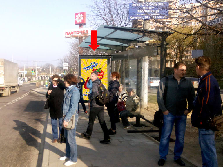 Зовнішня реклама в Львові: сітілайт 1.8×1.2 м. Розмір площини: 1.8×1.2 м, сторона A. Стратегічна локація для ефективної зовнішньої реклами. Код: Lv1536.