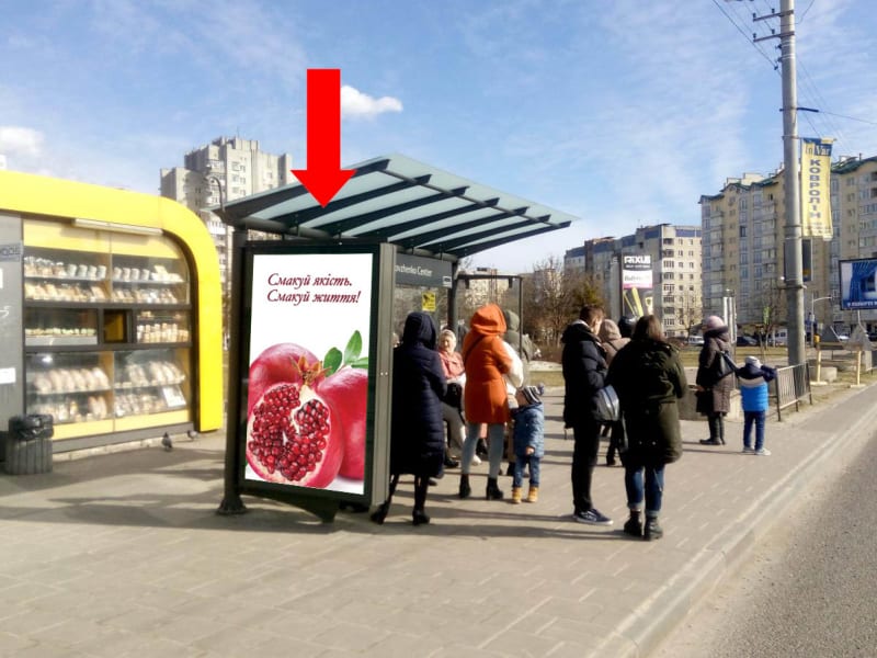 Рекламна площина 1.8×1.2 м в Львові — сітілайт. Формат 1.8×1.2 м (сторона B). Підходить для іміджевої та навігаційної реклами. Код: Lv1517.