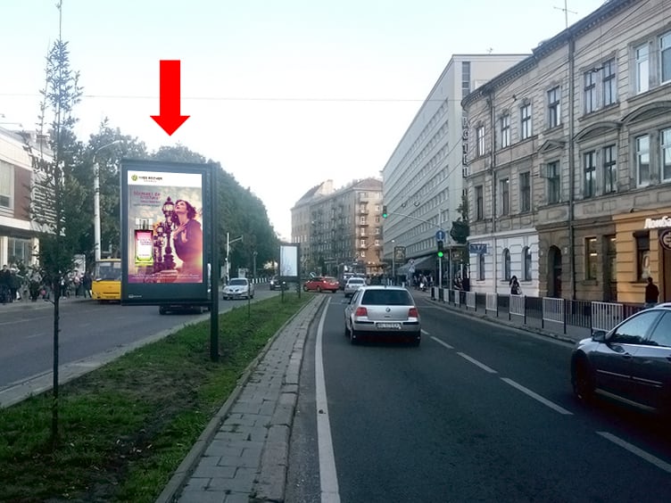 Біл борди Львів Чорновола пр., 11, роздільник, біля ресторану "Кумпель", в центр Lv1671-1 — Замовити | РА Тринога